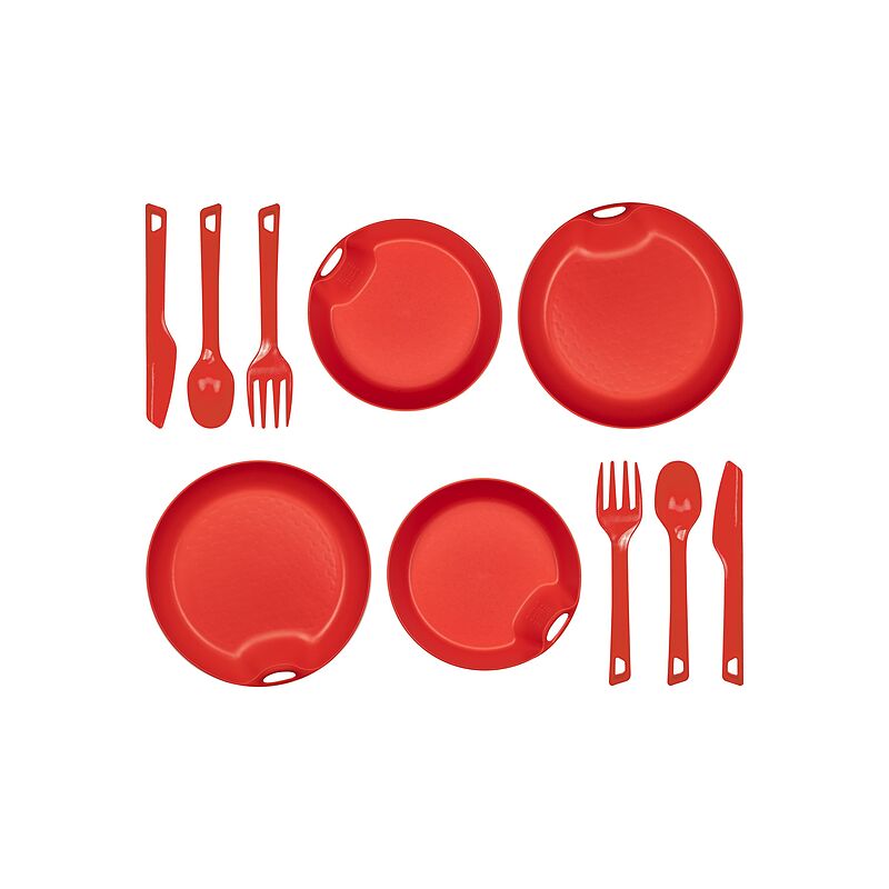 ۲ عدد بشقاب مقاوم،۲ عدد کاسه سبک، ۲ عدد قاشق، ۲ عدد چنگال، ۲ عدد کارد