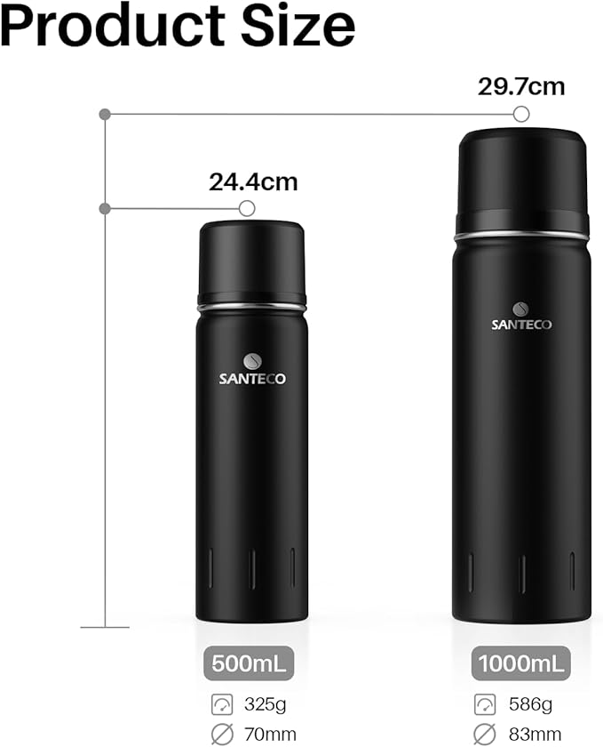 فلاسک سانتکو مدل SANTECO KOLIMA 500 mL با ابعاد 7.1×7.1×24.4 سانتیمتر و وزن 0.39 کیلوگرم، طراحی جمع و جوری دارد که به راحتی در کیف یا کولهپشتی جای میگیرد بدون اینکه بار سنگینی ایجاد کند. این ویژگیها در کنار هم، استفاده از فلاسک را بسیار آسان و کارآمد می سازد. طراحی ارگونومیک آن نیز به کاربران امکان میدهد تا به راحتی آن را در دست گرفته و از نوشیدنی های خود لذت ببرند.